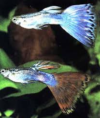 Samci jsou mnohem menší než samice. Vybarvení těla samičky gupky je mnohem mdlejší, než vybarvení jejího druha, ale barva její ocasní ploutve může být zářivá. Ocasní ploutev může nabývat nejrůznějších tvarů, včetně vějířovitého, závojovitého nebo tvaru podobného ocasu tetřeva. Těhotné samičky vyžadují silně zarostlou nádrž; porost rovněž chrání potěr před sežráním rodiči.